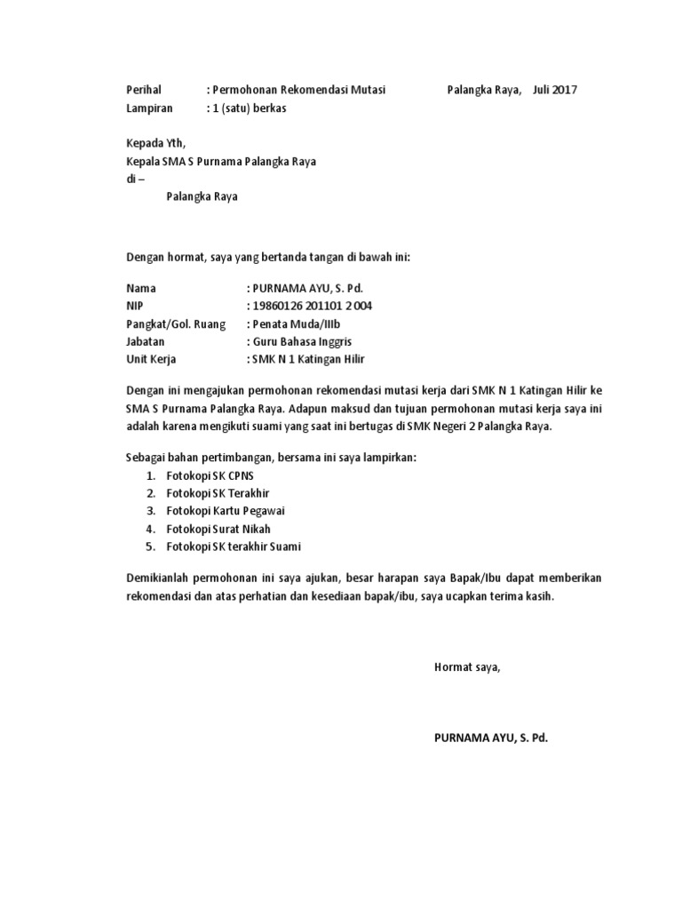 Contoh Surat Permohonan Mutasi Ikut Suami Pdf
